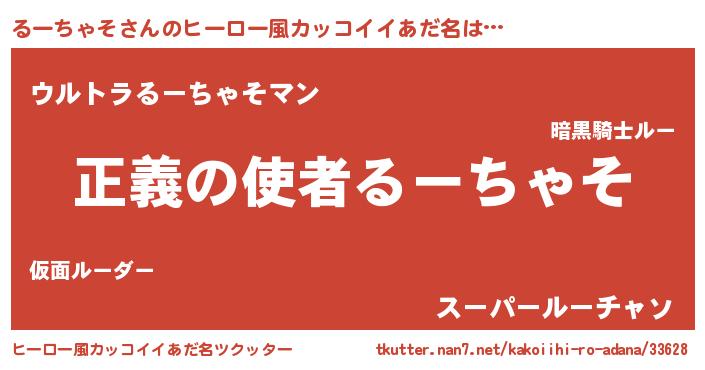 | 男性向けラノベタイトル風あだ名 | 『おまえをオタクにしてやるから、俺をるーちゃそにしてくれ! 』 |