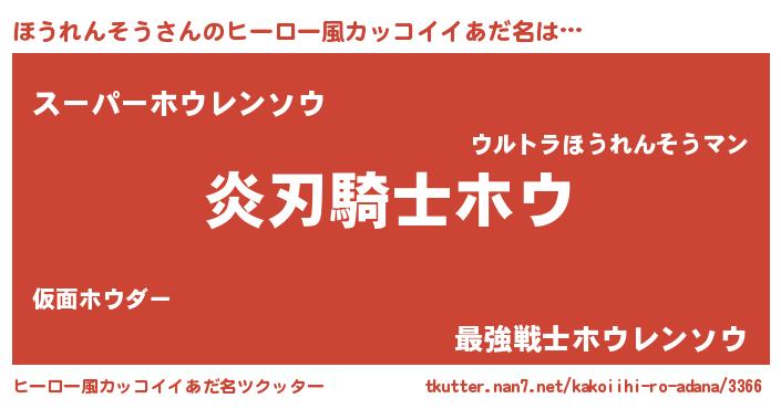 | 男性向けラノベタイトル風あだ名 | 『ほうれんそうの嫁は女の子じゃないと思った?』 |