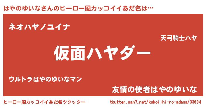 | 男性向けラノベタイトル風あだ名 | 『ハヤノユイナスレイヤー』 |