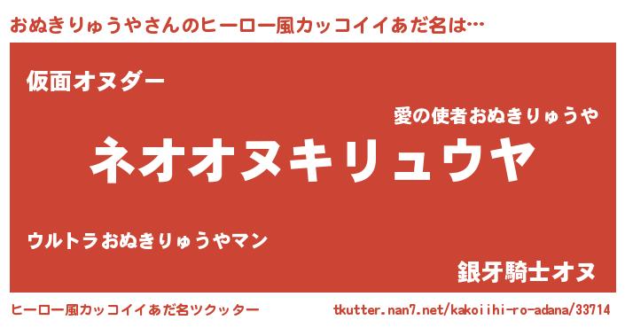 | 男性向けラノベタイトル風あだ名 | 『うちのおぬきりゅうやが世界を掌握している!』 |