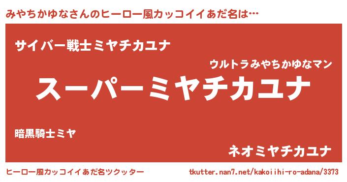| 胡散臭い通販商品みたいなあだ名 | 『必ず成功する霊験あらたかなお札…その名も「みやちかゆな」』 |