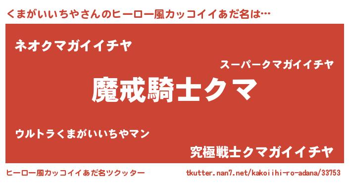 | 男性向けラノベタイトル風あだ名 | 『転生したらくまがいいちやだった件』 |