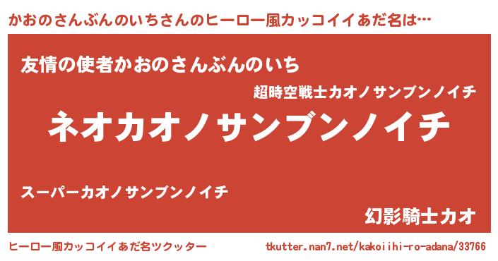 | 男性向けラノベタイトル風あだ名 | 『緋弾のカオノサンブンノイチ』 |