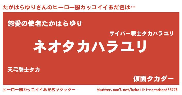 | 男性向けラノベタイトル風あだ名 | 『たかはらゆりに滅ぼされるだけの簡単なお仕事です』 |