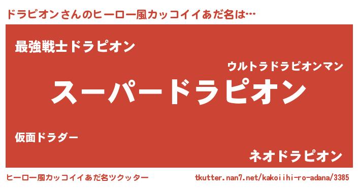 | ヘコむあだ名 | 『ドラふぇ~』『ドラピオン(遠い目)』 |