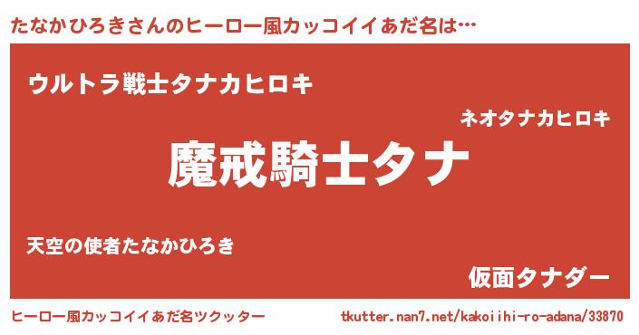 | ポケモン風あだ名 | 『ヒタナカヒロキ』『タナゴンZ』 |