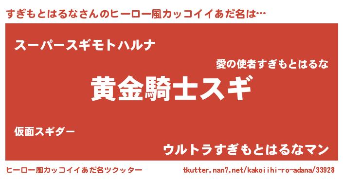 | 胡散臭い通販商品みたいなあだ名 | 『信頼と実績のサプリメント…その名も「すぎもとはるな」』 |