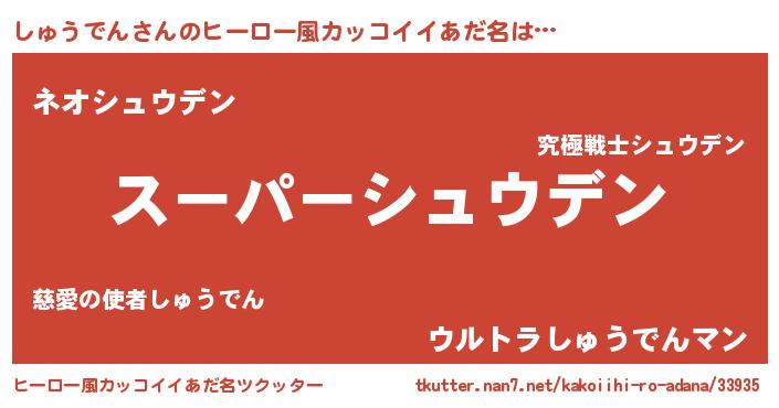 | 男性向けラノベタイトル風あだ名 | 『緋弾のシュウデン』『しゅうでんの憂鬱』 |