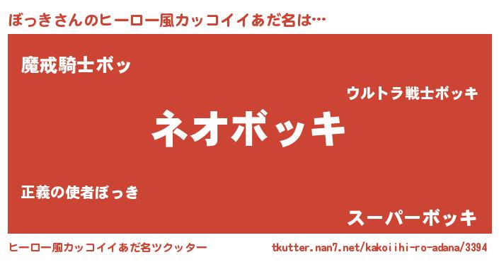 | ヘコむあだ名 | 『ぼっき(遠い目)』『ぼっっちょ』 |