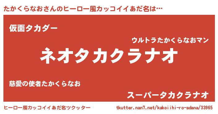 | 男性向けラノベタイトル風あだ名 | 『転生したらたかくらなおだった件』 |