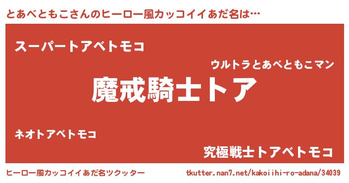 | 女子向けラノベタイトル風あだ名 | 『とあべともこの卵を拾いまして』 |