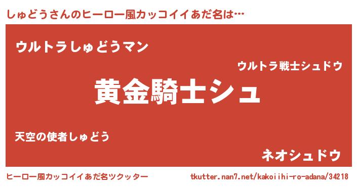 | 胡散臭い通販商品みたいなあだ名 | 『信頼と実績のサプリメント…その名も「しゅどう」』 |