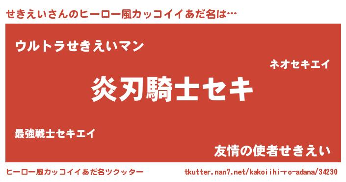 | 男性向けラノベタイトル風あだ名 | 『せきえい~年齢イコール彼女いない歴の魔法使い~』 |
