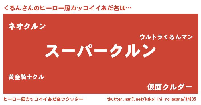 | 男性向けラノベタイトル風あだ名 | 『くるんに滅ぼされるだけの簡単なお仕事です』 |