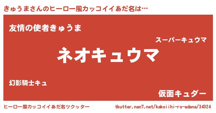 | 胡散臭い通販商品みたいなあだ名 | 『絶対に幸福をもたらす水素水…その名も「きゅうま」』 |