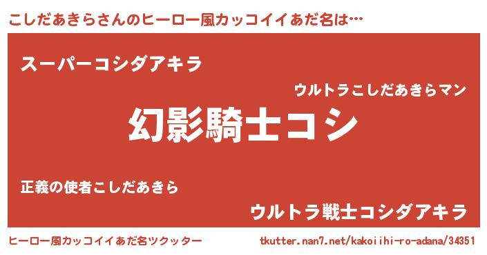 | 男性向けラノベタイトル風あだ名 | 『こしだあきらの嫁は女の子じゃないと思った?』 |