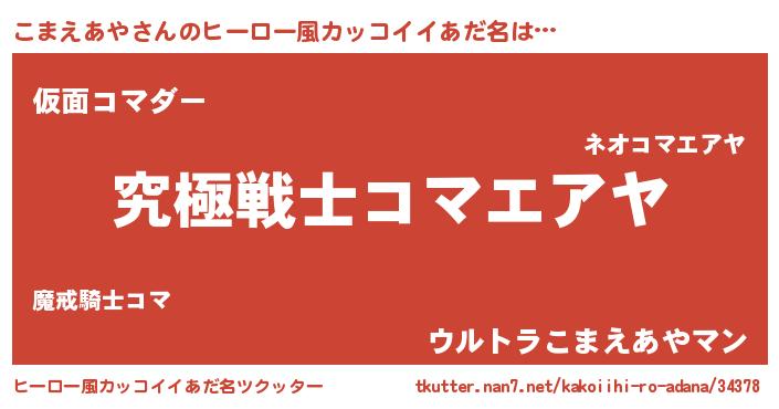 | 意味不明あだ名 | 『自称こまえあや』『永久保存こまえあや』 |