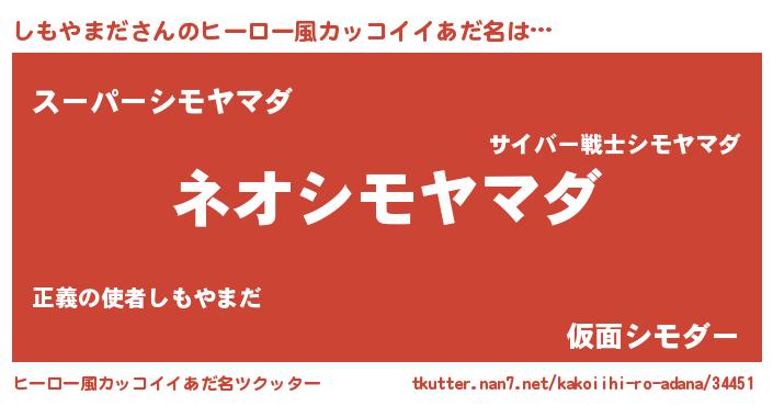| 意味不明あだ名 | 『永久保存しもやまだ』『自称しもやまだ』 |
