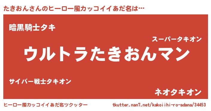 | 男性向けラノベタイトル風あだ名 | 『たきおん~年齢イコール彼女いない歴の魔法使い~』 |