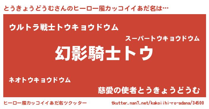 | 意味不明あだ名 | 『とにかく怪しいとうきょうどうむ』 |
