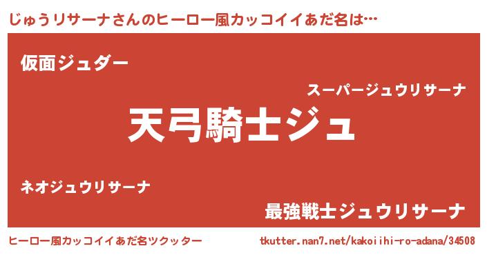 | 男性向けラノベタイトル風あだ名 | 『じゅうリサーナの嫁は女の子じゃないと思った?』 |