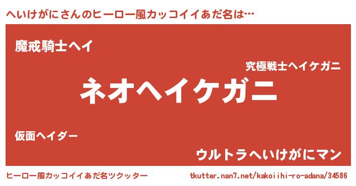 | 意味不明あだ名 | 『永久保存へいけがに』『自称へいけがに』 |