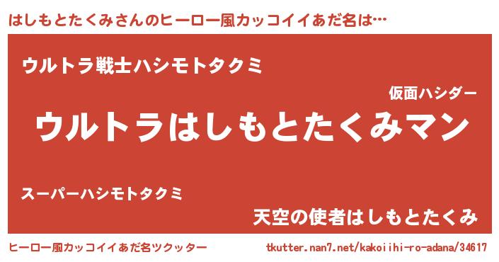 | 男性向けラノベタイトル風あだ名 | 『転生したらはしもとたくみだった件』 |