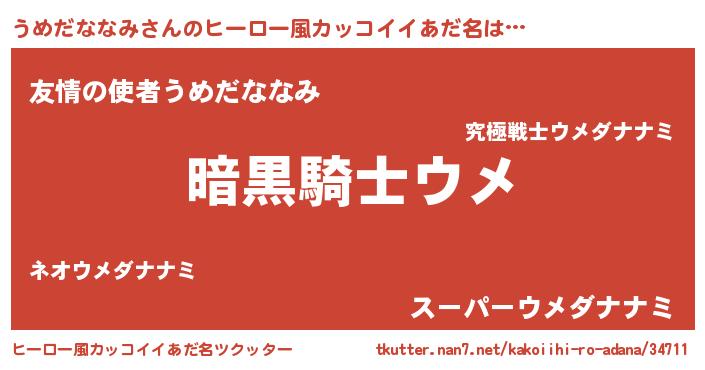 | 胡散臭い通販商品みたいなあだ名 | 『信頼と実績のサプリメント…その名も「うめだななみ」』 |