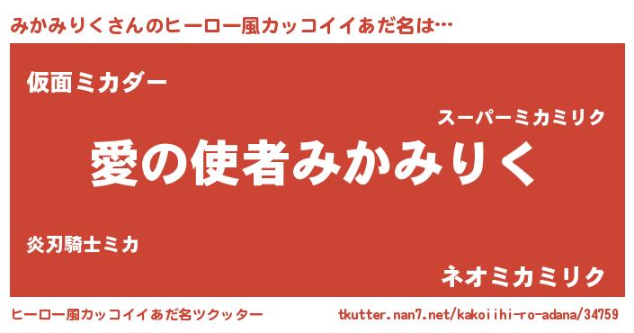 | ヘコむあだ名 | 『みかみりく(小並感)』『みかふぇ~』 |