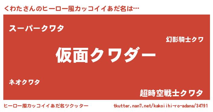 | 男性向けラノベタイトル風あだ名 | 『この素晴らしい世界にくわたを!』 |