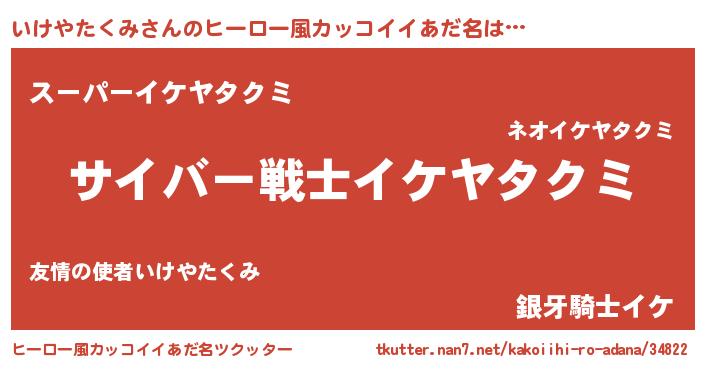 | 意味不明あだ名 | 『自称いけやたくみ』 |