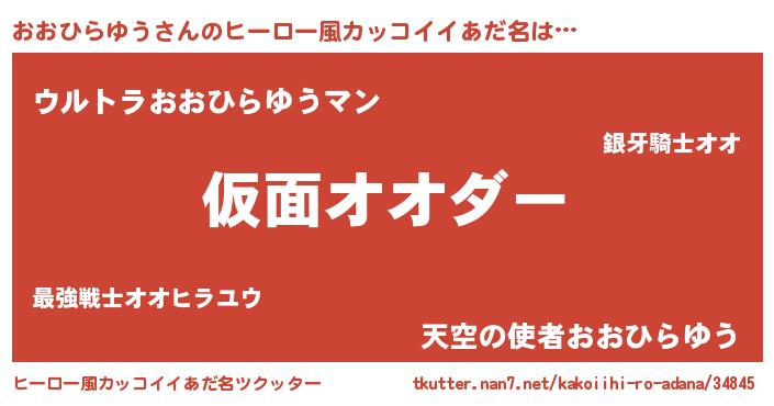 | 男性向けラノベタイトル風あだ名 | 『この素晴らしい世界におおひらゆうを!』 |