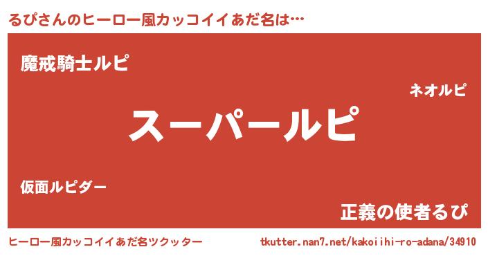 | 男性向けラノベタイトル風あだ名 | 『ルピアートオンライン』『緋弾のルピ』 |