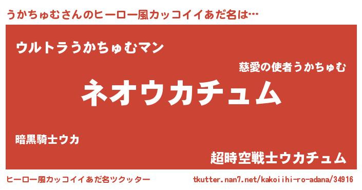| 男性向けラノベタイトル風あだ名 | 『うかちゅむという概念が存在しない退屈な世界 』 |