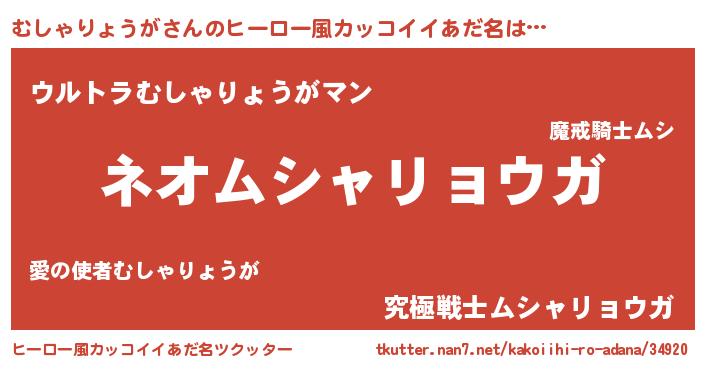 | 意味不明あだ名 | 『永久保存むしゃりょうが』 |