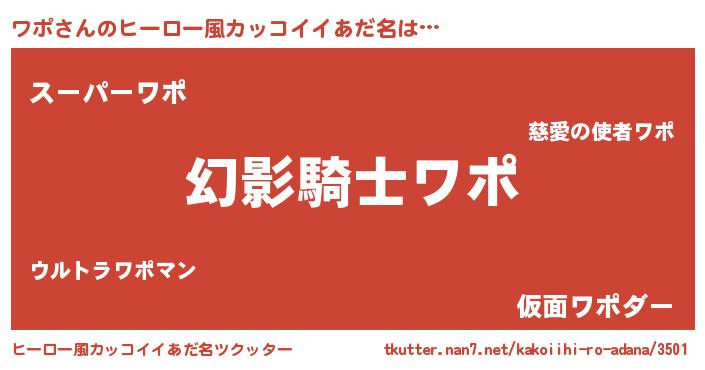 | 女子向けラノベタイトル風あだ名 | 『ワポ様がみてる』『ワポ姫と円卓の騎士』 |