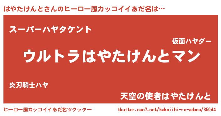 | ファンタジー風あだ名 | 『エターナルハヤタケントー』 |