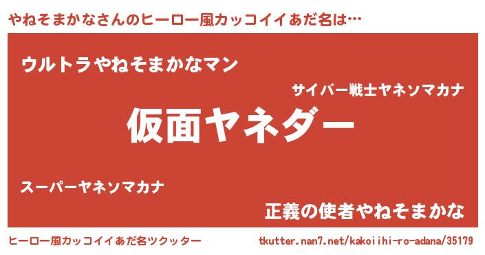 | 男性向けラノベタイトル風あだ名 | 『この素晴らしい世界にやねそまかなを!』 |