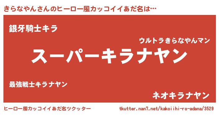| 男性向けラノベタイトル風あだ名 | 『キラナヤンアートオンライン』 |