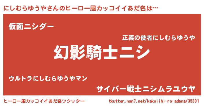 | 男性向けラノベタイトル風あだ名 | 『にしむらゆうやの嫁は女の子じゃないと思った?』 |