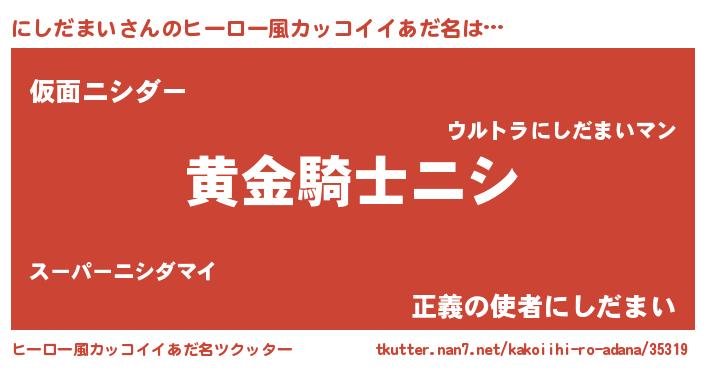 | ポケモン風あだ名 | 『ニシゴンZ』『ヒニシダマイ』 |