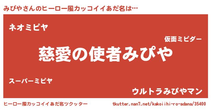 | 女子向けラノベタイトル風あだ名 | 『みぴやの玉の輿計画!』 |