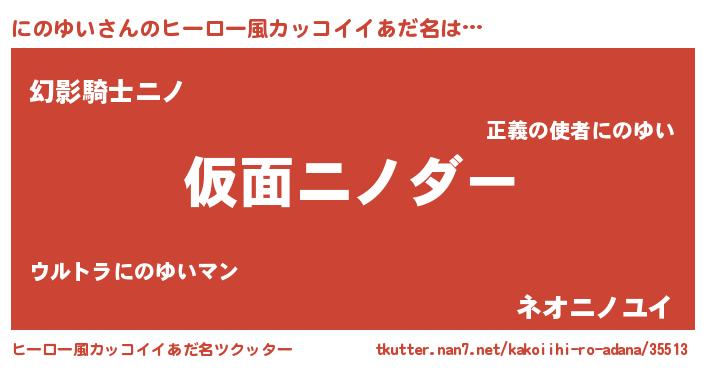| 男性向けラノベタイトル風あだ名 | 『この素晴らしい世界ににのゆいを!』 |