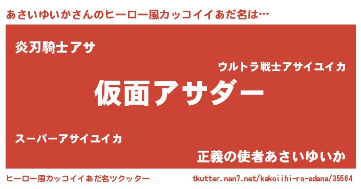 | 女子向けラノベタイトル風あだ名 | 『あさいゆいかの玉の輿計画!』 |