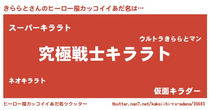 | 意味不明あだ名 | 『自称きららと』『ペロリンきららと』 |