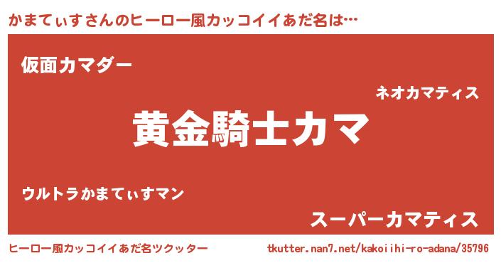 | 男性向けラノベタイトル風あだ名 | 『ダンジョンにかまてぃすを求めるのは間違っているだろうか』 |