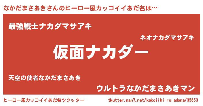 | 男性向けラノベタイトル風あだ名 | 『なかだまさあき~年齢イコール彼女いない歴の魔法使い~』 |