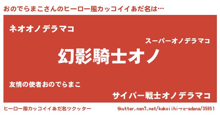| 男性向けラノベタイトル風あだ名 | 『おのでらまこの嫁は女の子じゃないと思った?』 |