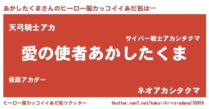 | 女子向けラノベタイトル風あだ名 | 『あかしたくま恋絵巻』 |