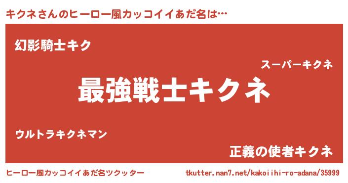 | 男性向けラノベタイトル風あだ名 | 『うちのキクネが世界を掌握している!』 |